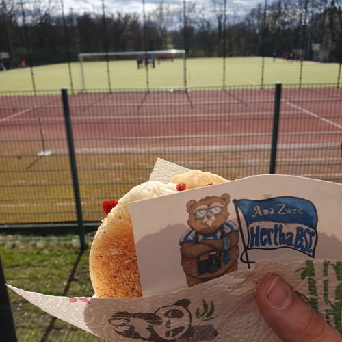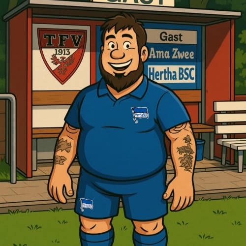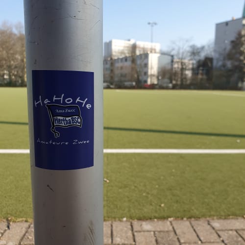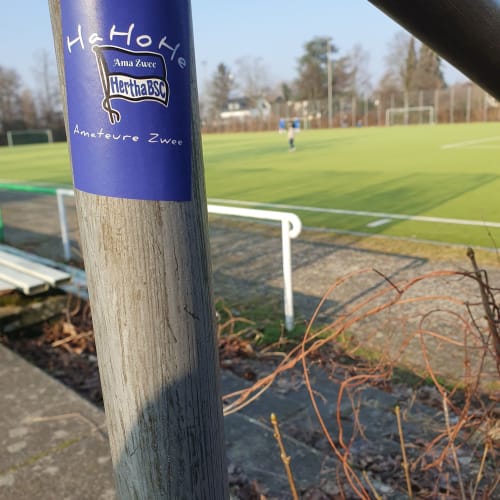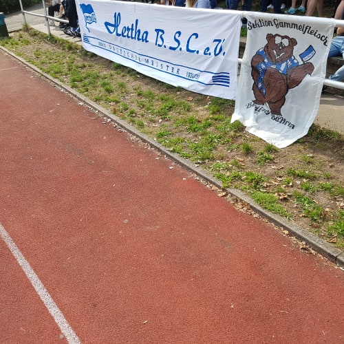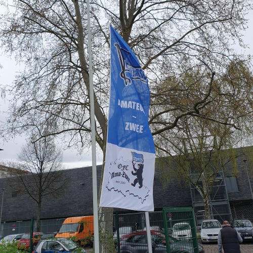 Ha Ho He Amateure Zwee…seit Mitte der 90ger hallt dieser Schlachtruf über Berlins Sportplätze. Gewidmet ist er der 1993 gegründeten dritten Mannschaft von Hertha BSC. So ziemlich von der Gründung an wird das Team von einigen, treuen Fans begleitet. Seit einiger Zeit stehen aber etwas mehr Zuschauer an der Seitenlinie als sonst. Schuld ist die Entwicklung des Profi-Fußballs. Bei Hertha BSC speziell der Einstieg des Investors. Einige Fans ertragen diesem ganzen Kommerz und den VAR nicht und haben sich den Profis abgewandt. Zur U23 zu gehen war auch keine Option, denn die sind, wie die Profis, in die Hertha BSC GmbH & Co. KGaA ausgegliedert. Dadurch sind die Ama Zwee quasi die erste Mannschaft des Hertha BSC e.V. Und hier haben einige Herthaner ein neues Zuhause gefunden. Beim Thema „Zuhause“: Die Ama Zwee spielten erst jahrelang auf dem Sportplatz an der Ungarnstraße, dann an der Lüderitzstraße und schließlich als Untermieter beim BSC Rehberge. Zwischendurch fanden Heimspiele immer Mal wieder auf einem der Plätze auf dem Olympiagelände statt. Mittlerweile ist man zuversichtlich eine neue Heimat auf dem Sportplatz an der Behmstraße gefunden zu haben. Direkt am Fuße der Millionenbrücke. Behmstraße? Millionenbrücke? Da klingeln doch bei einigen Herthaner die Ohren. Denn dort stand einst die Plumpe. Zwar auf der anderen Straßenseite des heutigen Sportplatzes, aber näher kommt man Hertha BSC und ihrer Geschichte wohl nirgends. Ich sprach mit Ramon, einem der „neuen“ Fans der dritten und Armin, der guten Seele des Teams. Wie sah die Vergangenheit aus? Wohin soll die Zukunft gehen? Wie verstehen sich die Neuankömmlinge am Spielfeldrand mit den alteingesessenen? Hört rein und erfahrt es