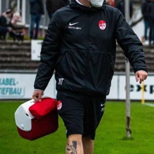 Ein Spieler geht zu Boden und bleibt verletzt liegen. Sobald der Schiri das Zeichen gibt, kommt der Physio aufs Feld und leistet erste Hilfe. Doch warum rennt in der Oberliga BaWü ein Pysio mit dem Berliner Bären auf dem Schienbein und der Hertha Fahne auf der Wade über die Plätze? Timo ist Träger dieser Tattoos und des erste Hilfe Koffers des Offenburger FV und wird es uns erklären. Viel Spaß.
