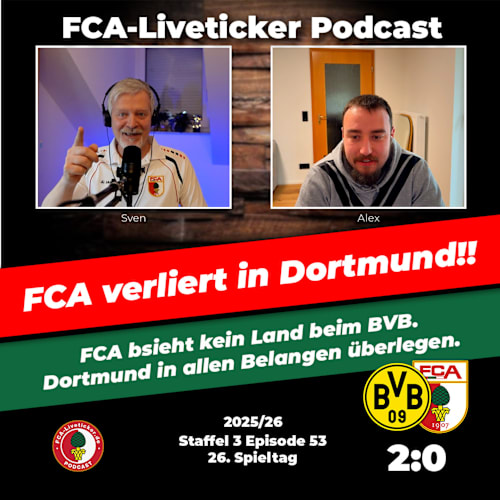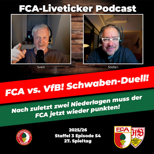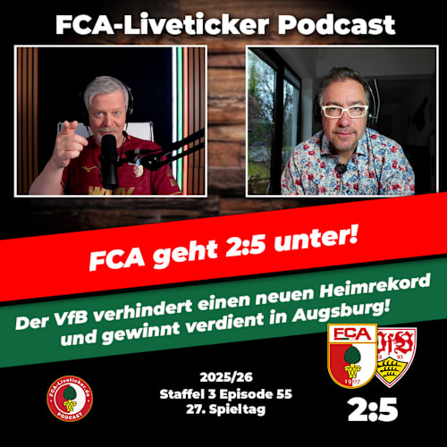 Autsch! Das tat weh. Anstatt einen neuen Rekord aufzustellen (9 Spiele ohne Heimniederlage) kassiert der FCA gleich fünf Stück, und verliert verdient mit 2:5 gegen einen starken VfB Stuttgart. Ein Doppelpack von Undav, und auch der Ex-Augsburger Demirovic trugen sich in die lange Liste der Torschützen ein.Nach 0:3 zur Halbzeit war eigentlich schon ein Haken dran, aber zumindest der Wille war da. Die aufkeimende Hoffnung nach dem 1:3 Anschlusstreffer wich allerdings dann fast postwendend der erneuten Ernüchterung, als der VfB mit dem 1:4 wohl endgültig den Deckel draufmachte. An diesem Tag war der FCA einfach nicht gut genug, nicht giftig genug. Der Gegner wollte es mehr. Und damit hat Manuel Baum jetzt eine erste kleine Krise nach dem Aufschwung am Hals, die es zu lösen gilt.Im Studio: Alex und Sven#FCA, #FCA1907, #FCAugsburg, #FCAugsburg07, #Bundesliga, #liveticker, #augsburg, #fußball, #podcast, #sportspodcast, #fcaliveticker, #fca-liveticker, #sport, #bundesligapodcast, #sportpodcast, #sports, #AugsburgerFußball, #FußballBusiness, #SportCEO, #FußballPodcast, #PodcastDE, #Interview, #PodcastFolge, #VfB, #Stuttgart, #vfbstuttgart, #schwabenderby, #derby, #VAR, #Schiedsrichter«𝙁𝘾𝘼-𝙇𝙞𝙫𝙚𝙩𝙞𝙘𝙠𝙚𝙧 – 𝙙𝙚𝙧 𝙋𝙤𝙙𝙘𝙖𝙨𝙩» gibt es auf 𝗬𝗼𝘂𝗧𝘂𝗯𝗲 https://bit.ly/fca-liveticker-podcast-youtube 𝗬𝗼𝘂𝗧𝘂𝗯𝗲 𝗠𝘂𝘀𝗶𝗰 https://bit.ly/fca-liveticker-podcast-yt-music 𝗔𝗽𝗽𝗹𝗲 𝗣𝗼𝗱𝗰𝗮𝘀𝘁𝘀 https://apple.co/44PMvsD 𝗦𝗽𝗼𝘁𝗶𝗳𝘆 https://spoti.fi/3wEnMeq 𝗔𝗺𝗮𝘇𝗼𝗻 𝗠𝘂𝘀𝗶𝗰 https://amzn.eu/d/2SDy08W 𝗔𝘂𝗱𝗶𝗯𝗹𝗲 https://amzn.eu/d/hmWXteO